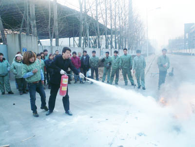 随后公司安全员向参加消防演习的各应急小组进行了现场消防培训,具体讲解了灭火器材的种类及其性能、适应火种及其操作要领,讲解完毕后由员工进行现场操作进行消防疏散和模拟灭火演习。此次模拟主要目的是验证消防应急预案的可行性和符合实际情况的程度和提高广大员工自我救护的能力和科学逃生的能力;培养员工紧急遇险时的互助精神和逃生能力;使大家能真学、真会、真懂、真用,熟练掌握使用灭火器的要领。
